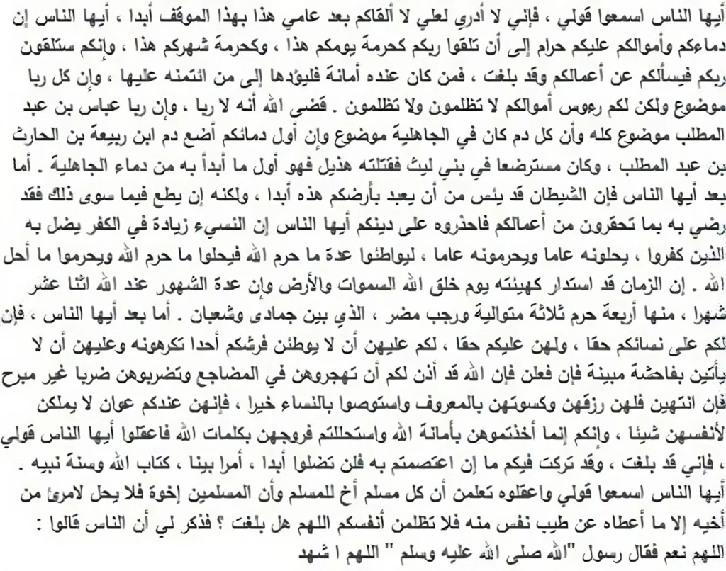 Translation of the Last Sermon of Prophet Muhammad (PBUH)